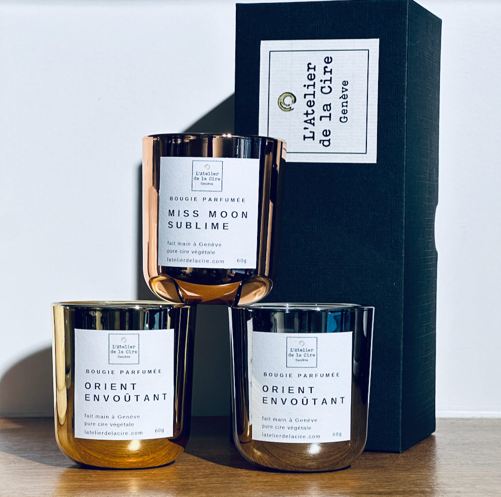 Toutes nos bougies sont mélangées et coulées à la main dans notre atelier à Genève avec des matières premières éco-responsables.